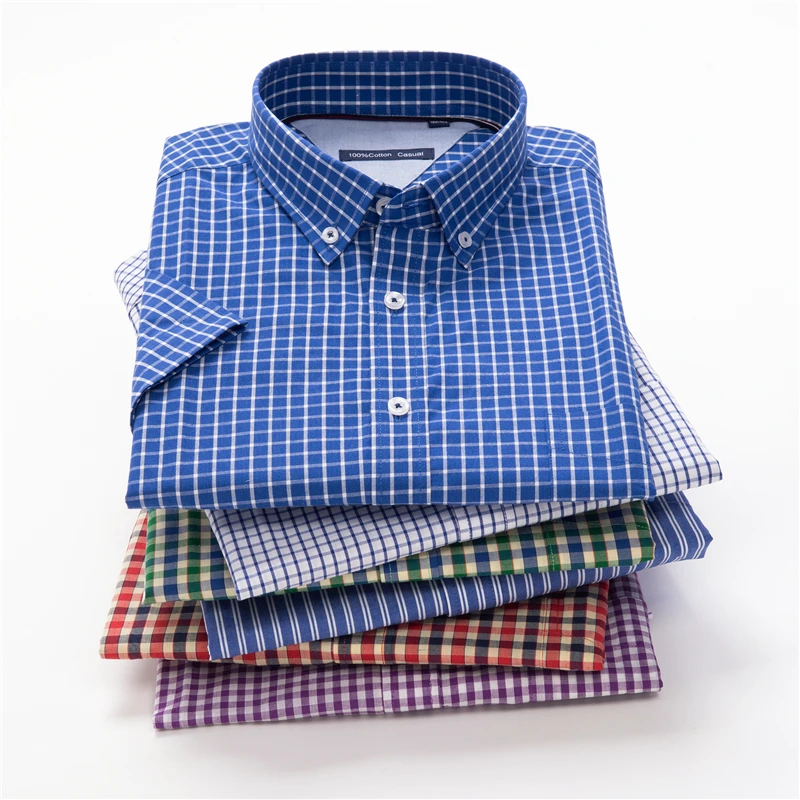 Name: Camisa clásica de manga corta a cuadros para hombre, Camisa de algodón de 100% de alta calidad, ligera y cómoda, juvenil, de moda, verano, 2021